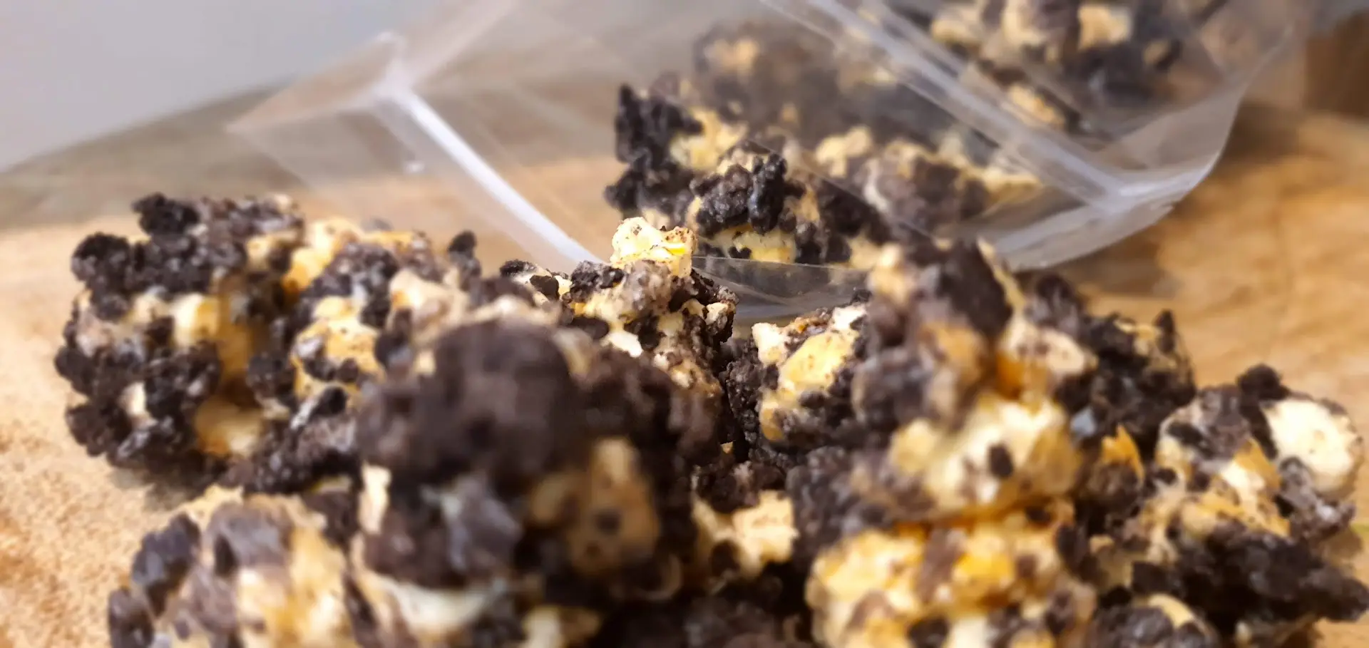 Un Popcorn gourmant au caramel maison, enrobé d’un chocolat blanc de qualité supérieure et roulé dans les brisures d’Oréo.